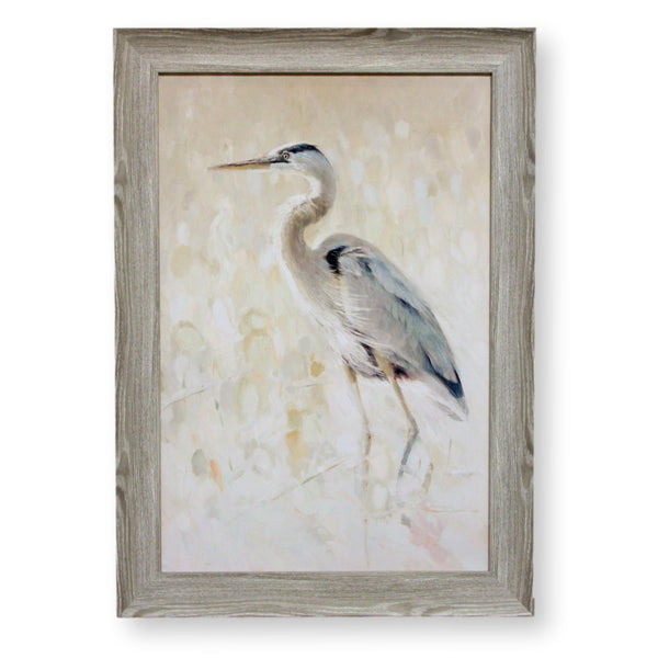 Framed Original Oil Blue Tropical Heron