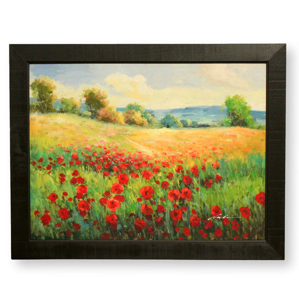 Framed Original Oil Red Flower Landscape