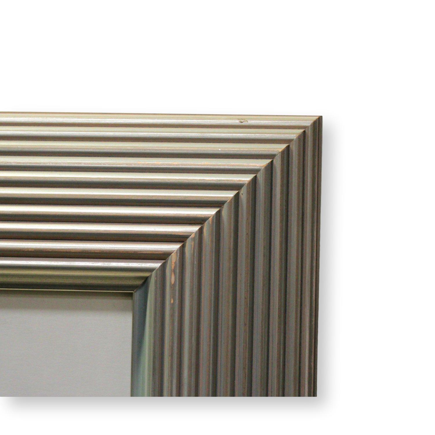 Vertical abstract composition featuring layered brushwork and geometric forms in purple, black, white, orange, and blue. Mixed-media textures create depth across a mottled background. Quadruple-matted in white and set in a ridged metallic silver frame. Suitable for contemporary or transitional interiors.