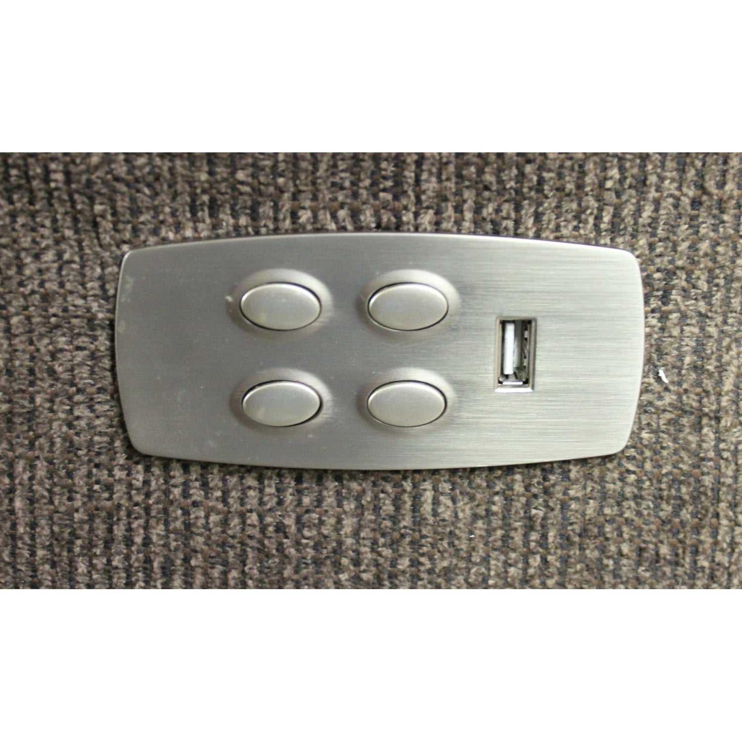 Upholstered in brown fabric, this high-back recliner features plush cushioning across the seat, arms, and back for full-body support. The dual motor mechanism allows independent adjustment of the footrest and backrest, while the built-in USB port offers convenient device charging. Its gentle rocking motion and wide seat profile suggest comfort-forward design suited to casual living spaces.