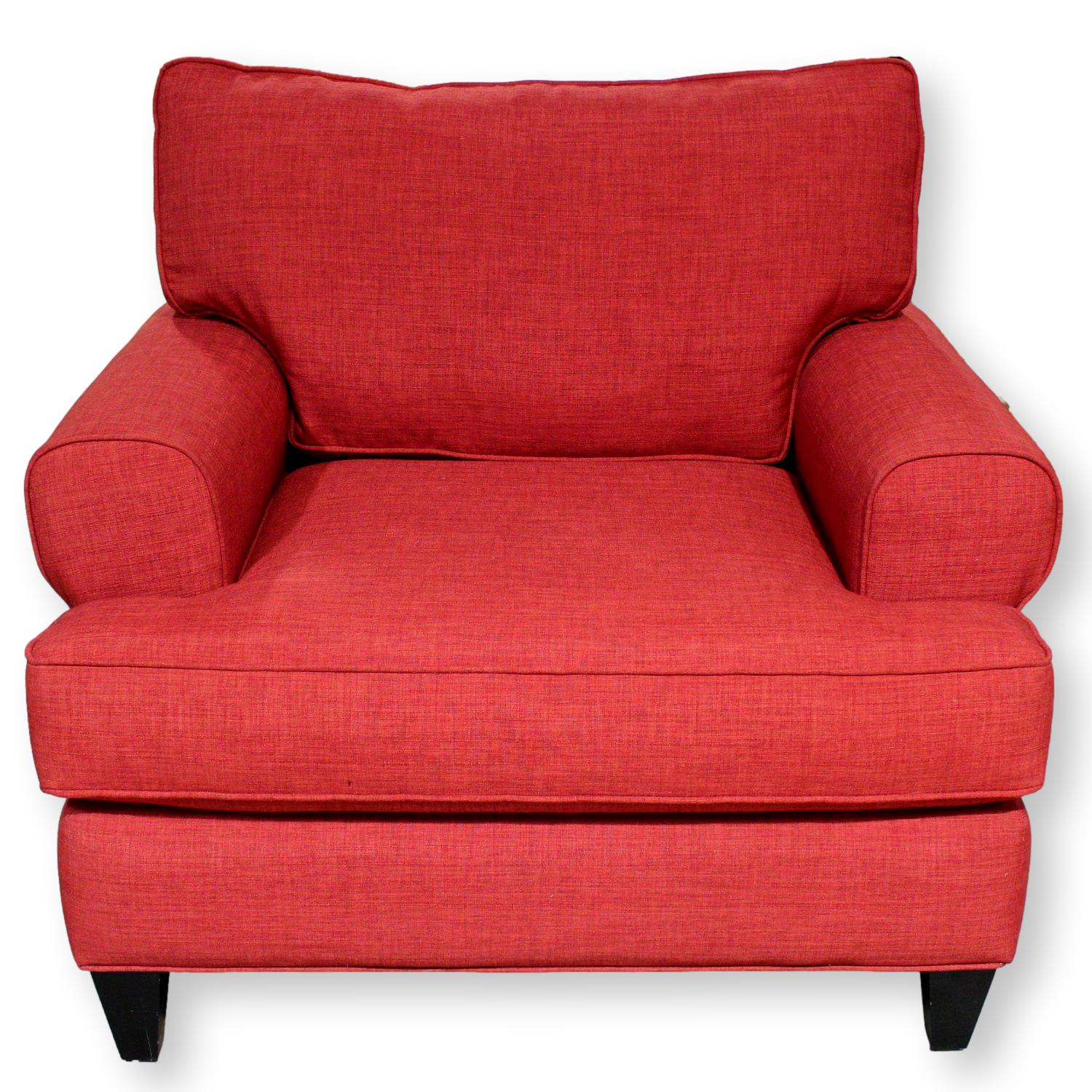 This piece features a boxy silhouette with wide, padded arms and a deep cushioned seat for substantial support. The textured red upholstery has a tight, woven appearance that adds visual structure. A loose back cushion softens the profile, while short, angled black legs provide a clean, modern base.