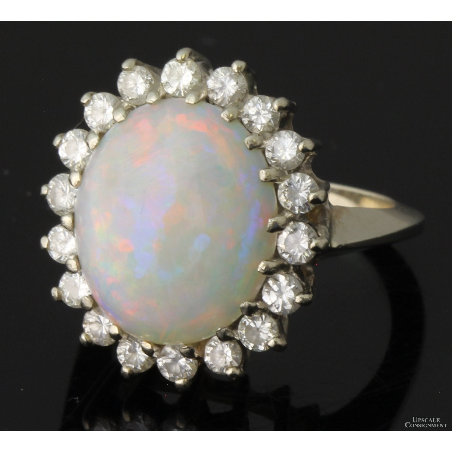 10.04ct Opal & 1.0ctw Diamond Halo 14K White Gold Ring
