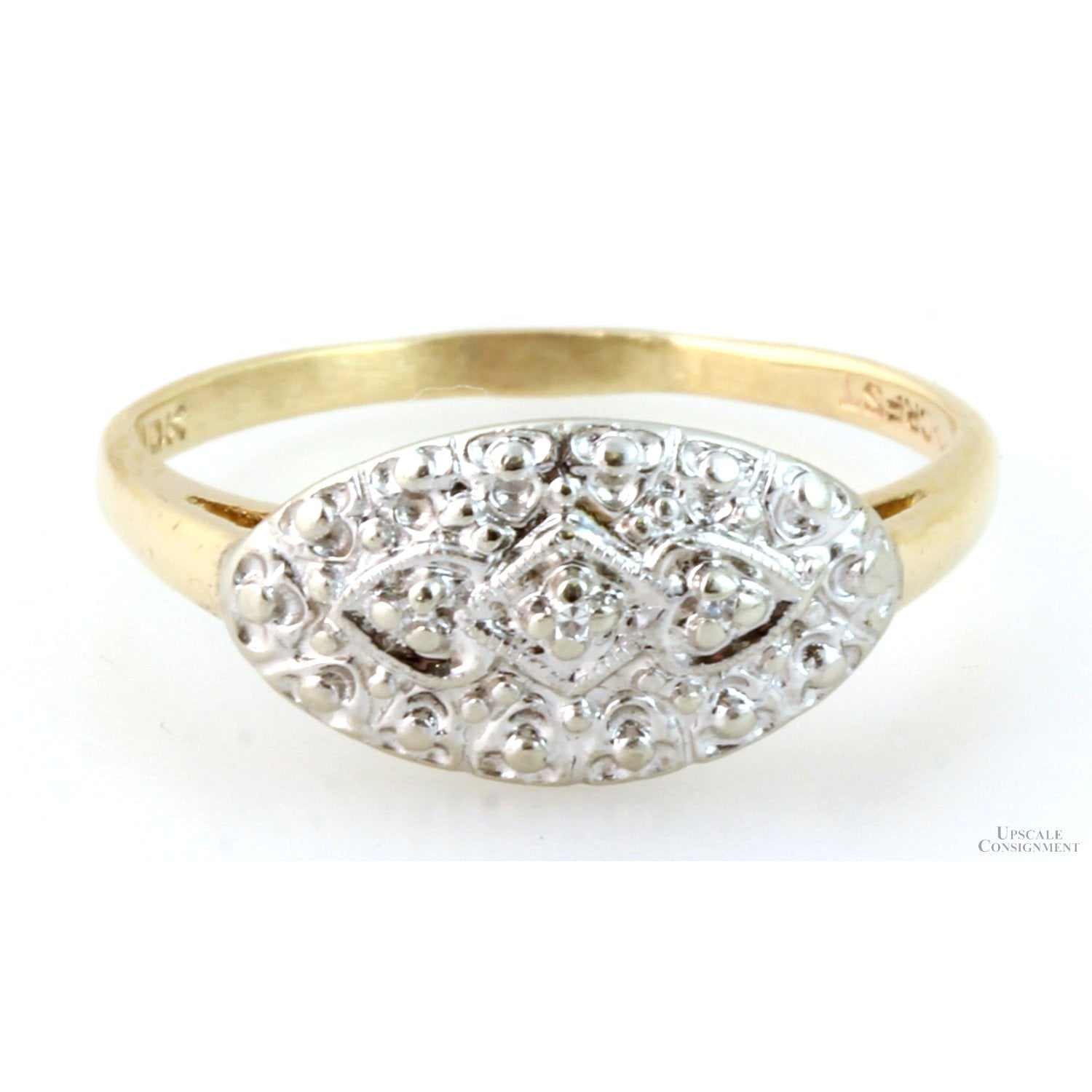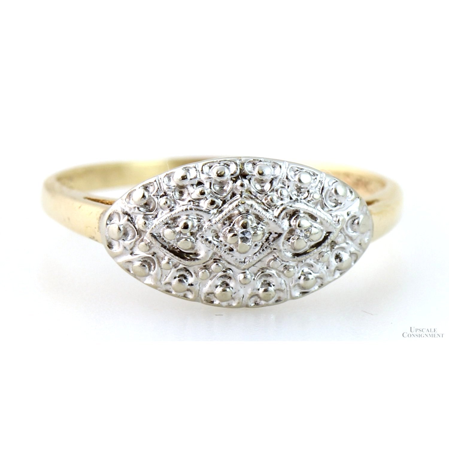 Vintage Two-Tone 10K Gold Art Deco Embossed Oval Face Diamond Ring