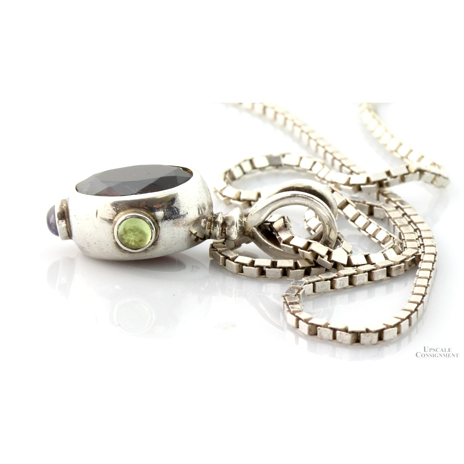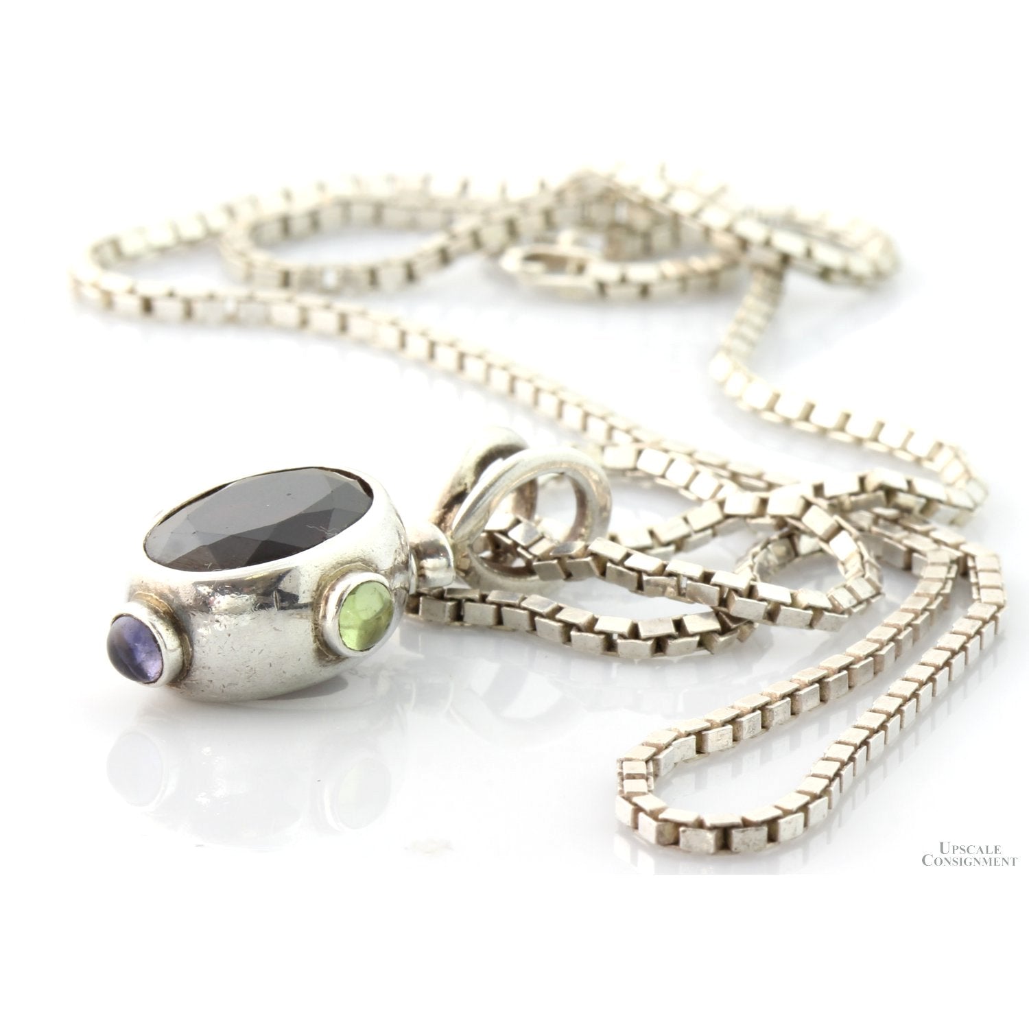 Crafted in sterling silver, the pendant and bail measure 1.25" in length and .75" in width. The sterling silver chain that is included is a box-style chain, measures 24" in length, and is secured with a lobster style clasp. #90 #A.