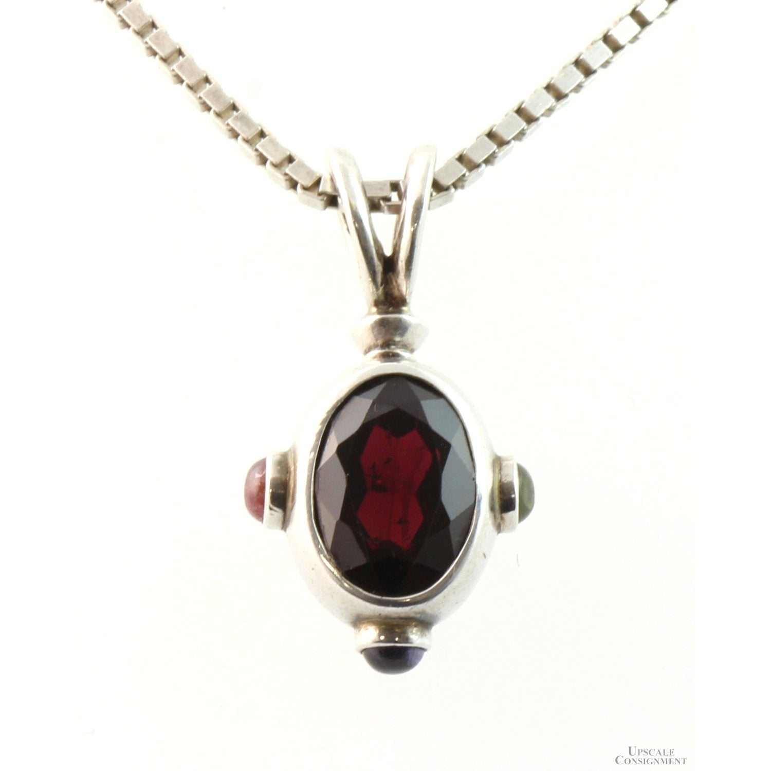 Almandine Garnet Sterling Silver Pendant & 24" Chain
