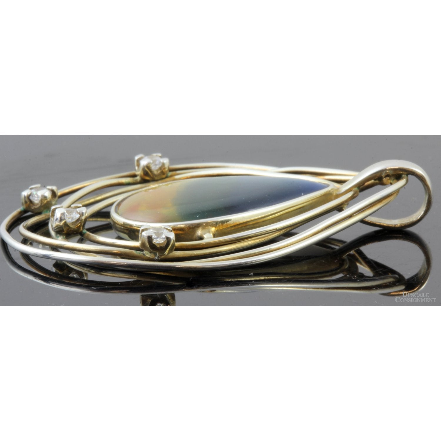 Ammolite Triplet & White Sapphire Sterling Silver Pendant