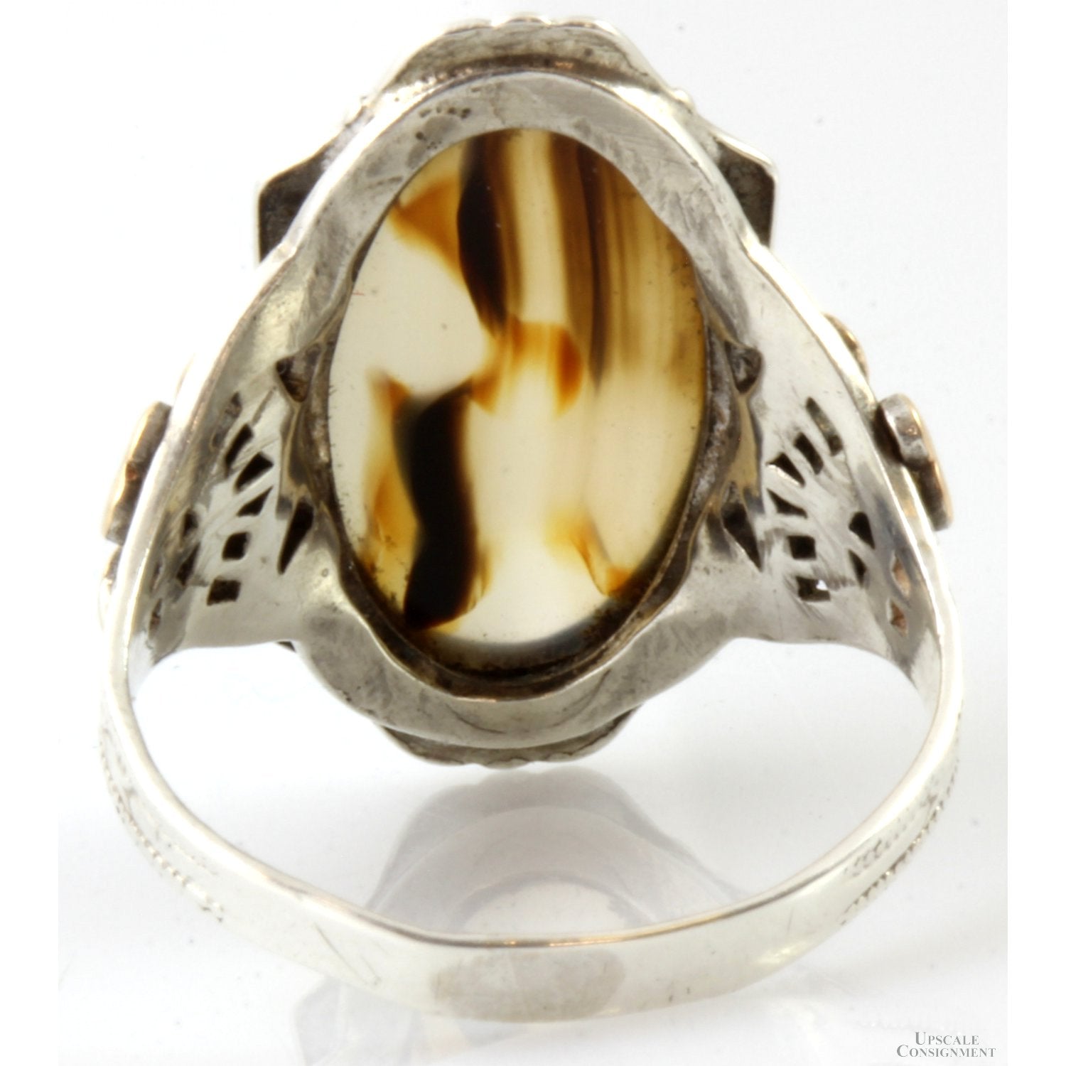 Art Nouveau Sterling & 14K RGP Dendritic Agate Antique Ring