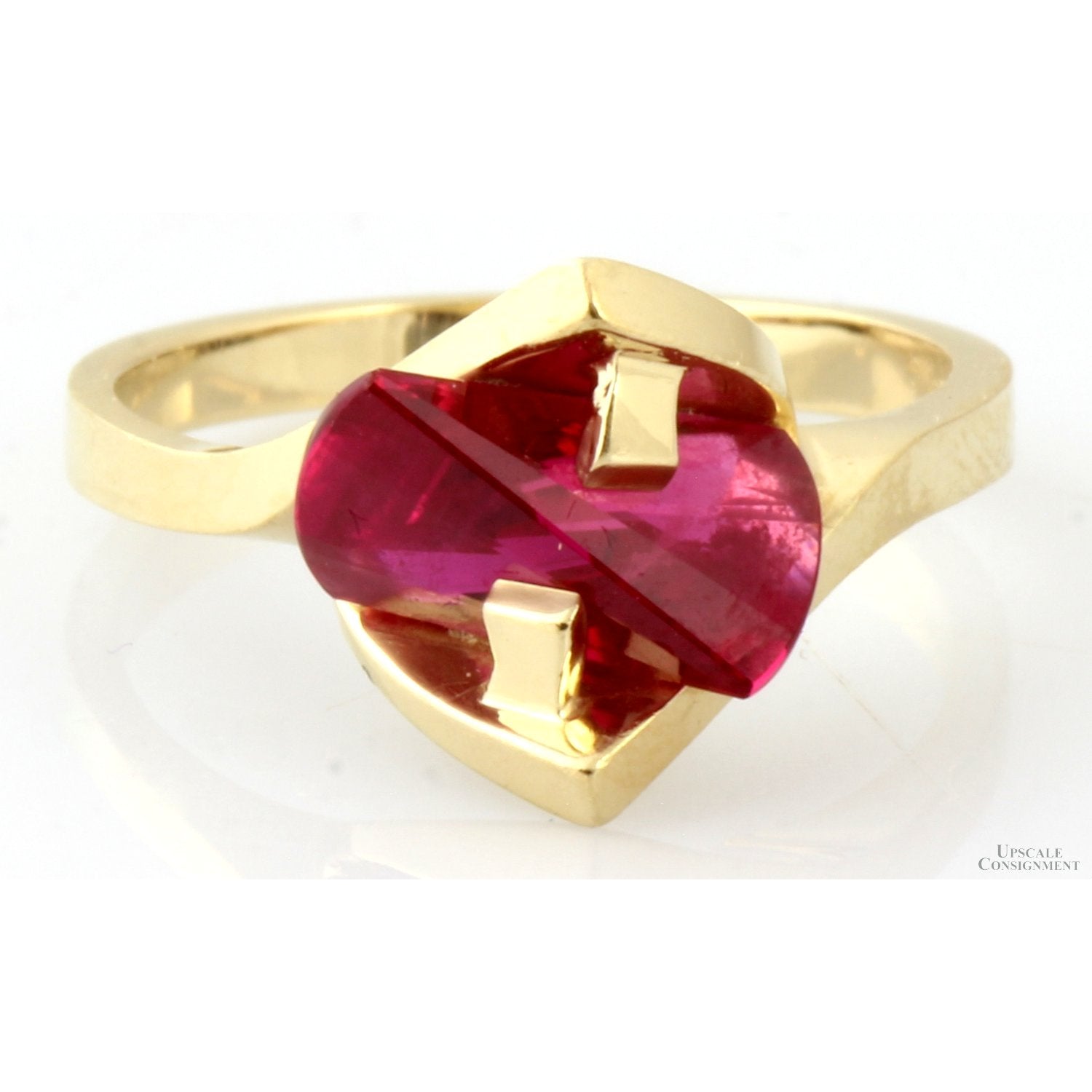 Lighthouse Lens Cut Created Red Spinel 14K Gold Ring