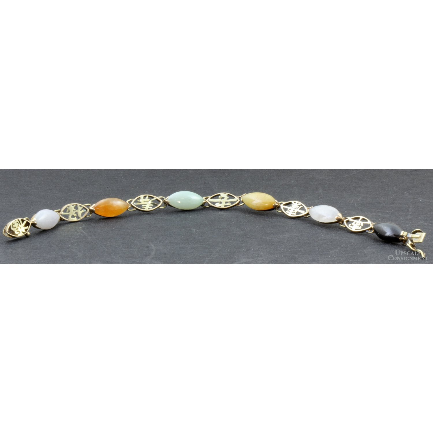 Multicolor Marquise-Shape Jade 14K Gold Good Fortune Bracelet