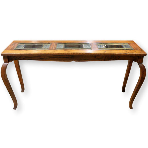 Oak Console Table w/Leaded Glass Inserts