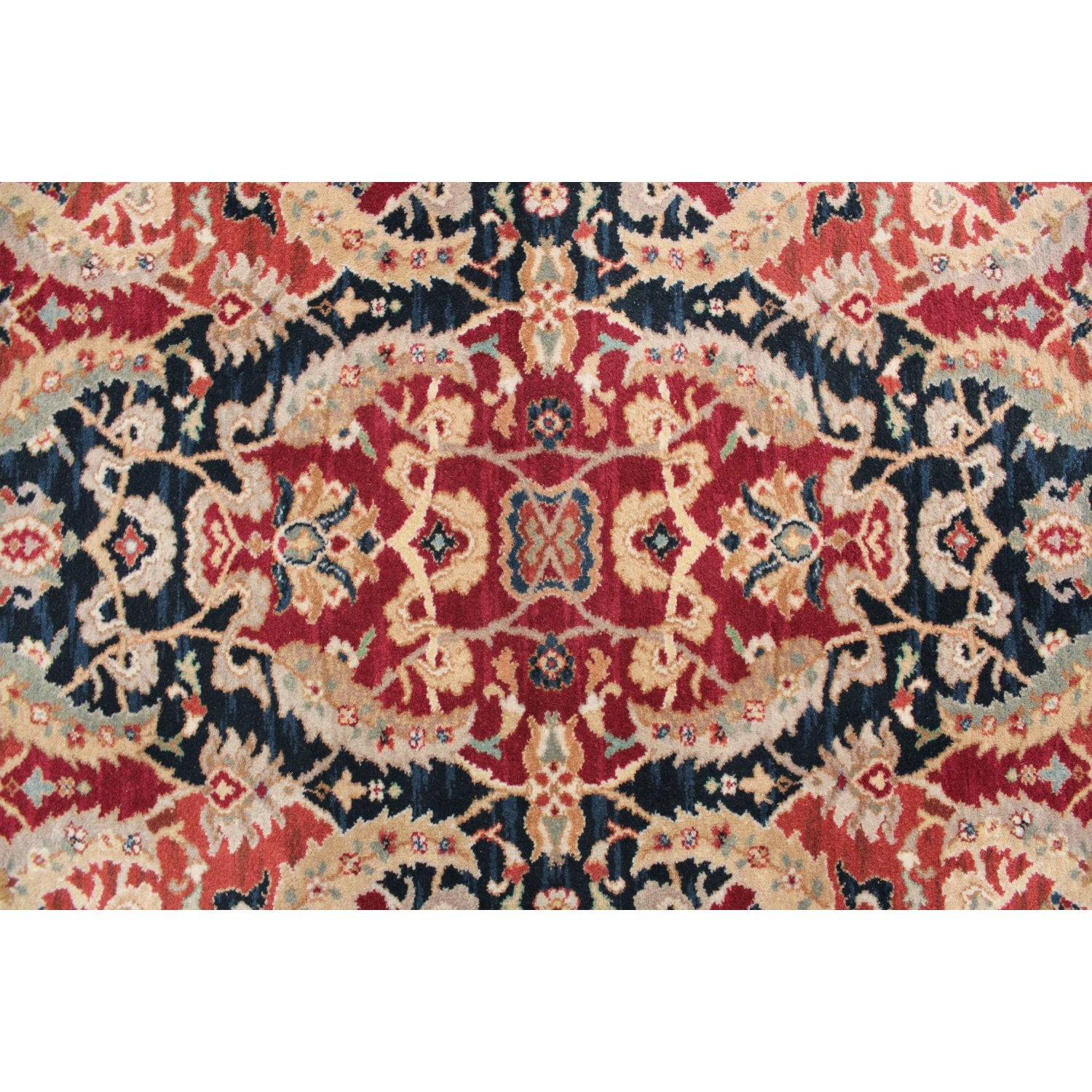 Hand-knotted in worsted New Zealand wool, this 6x9 rug features a traditional Agra panel design with symmetrical floral motifs and framed medallions. The palette includes deep reds, muted blues, and ivory accents, bordered by repeating vine and blossom patterns. Its dense weave and balanced composition reflect classical Indo-Persian influences. Suitable for medium-traffic areas where visual structure and craftsmanship are prioritized.