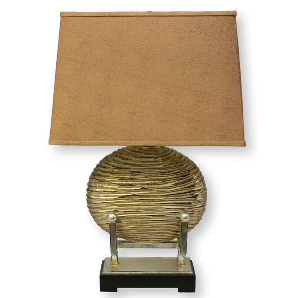 Ornately Carved Table Lamp w/Tan Oval Burlap Shade