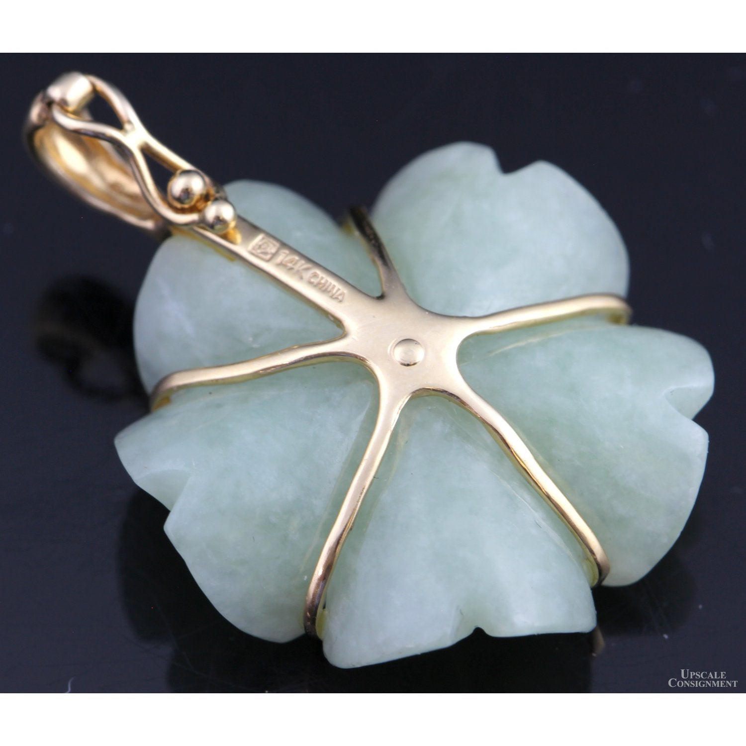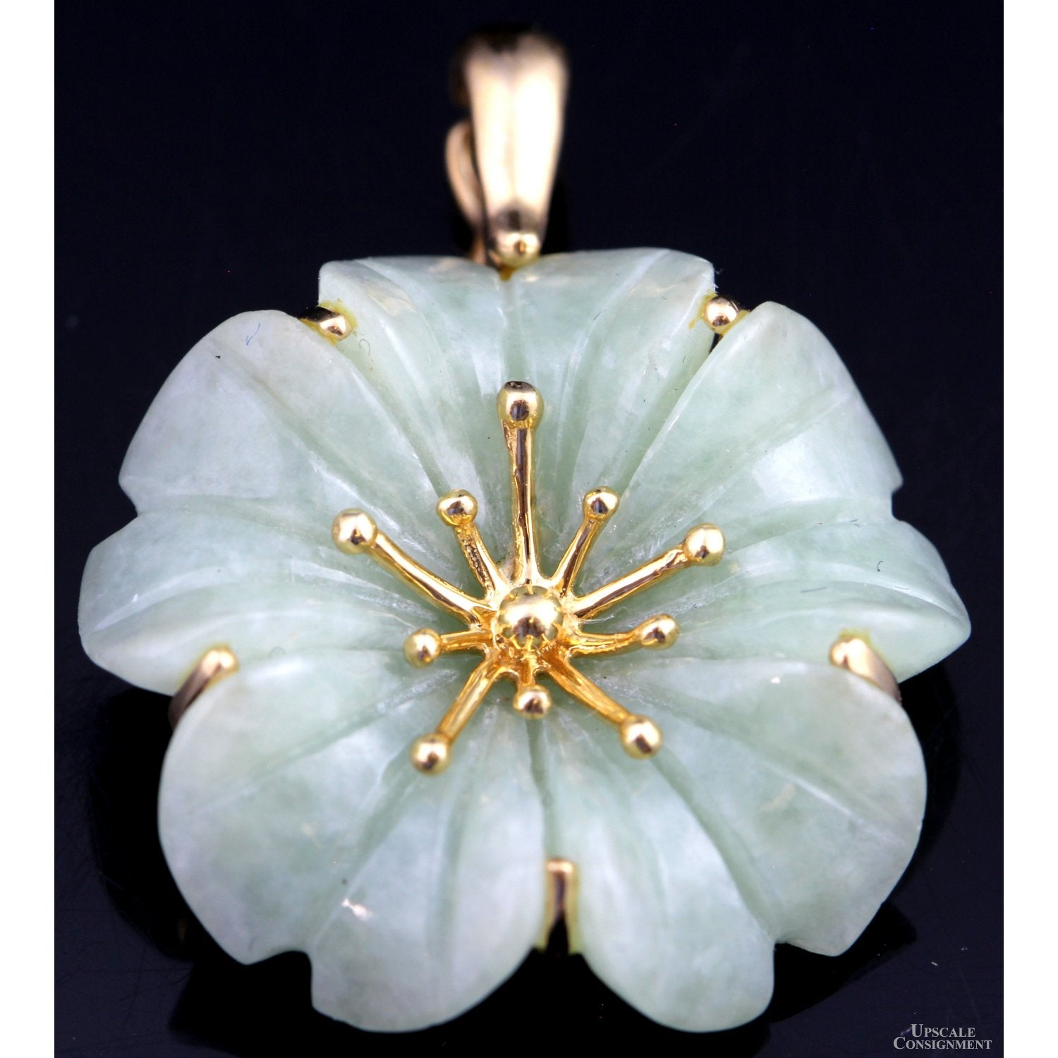 14K Gold Green Jadeite Jade Flower Enhancer Pendant