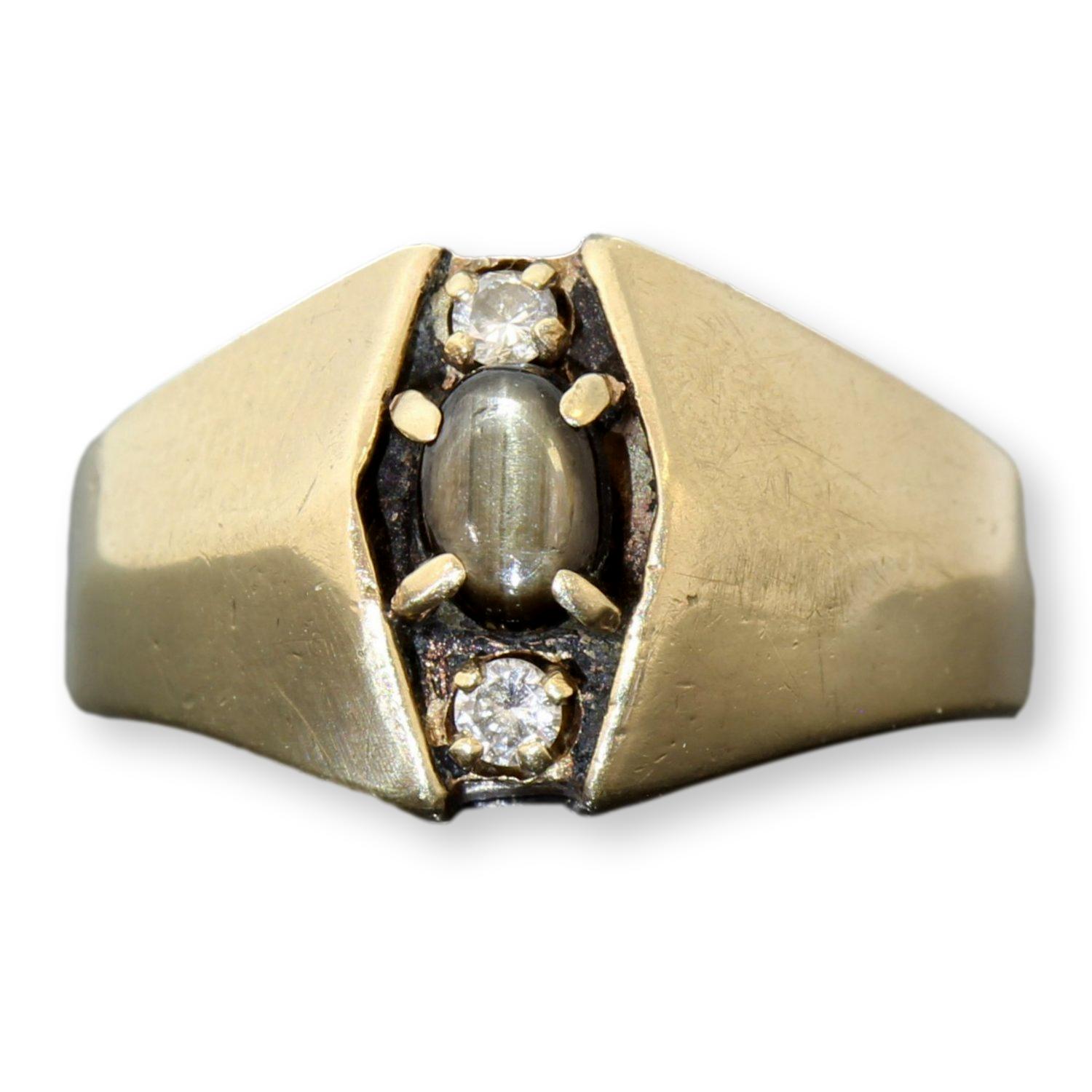 .57 Black Cats Eye Star Sapphire .10ctw Diamond 10K Gold Ring