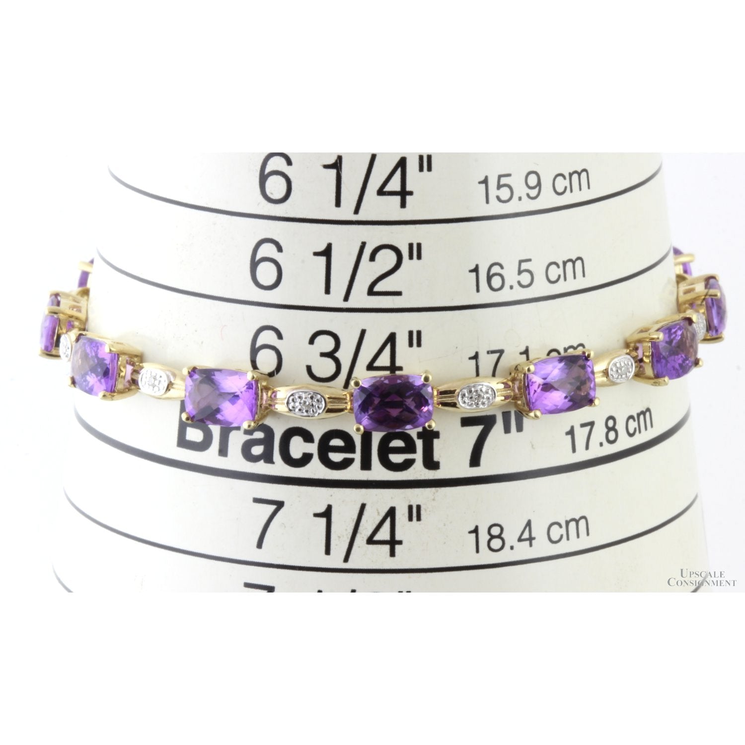 8.52ctw Amethyst & Diamond 10K Yellow Gold Link Bracelet