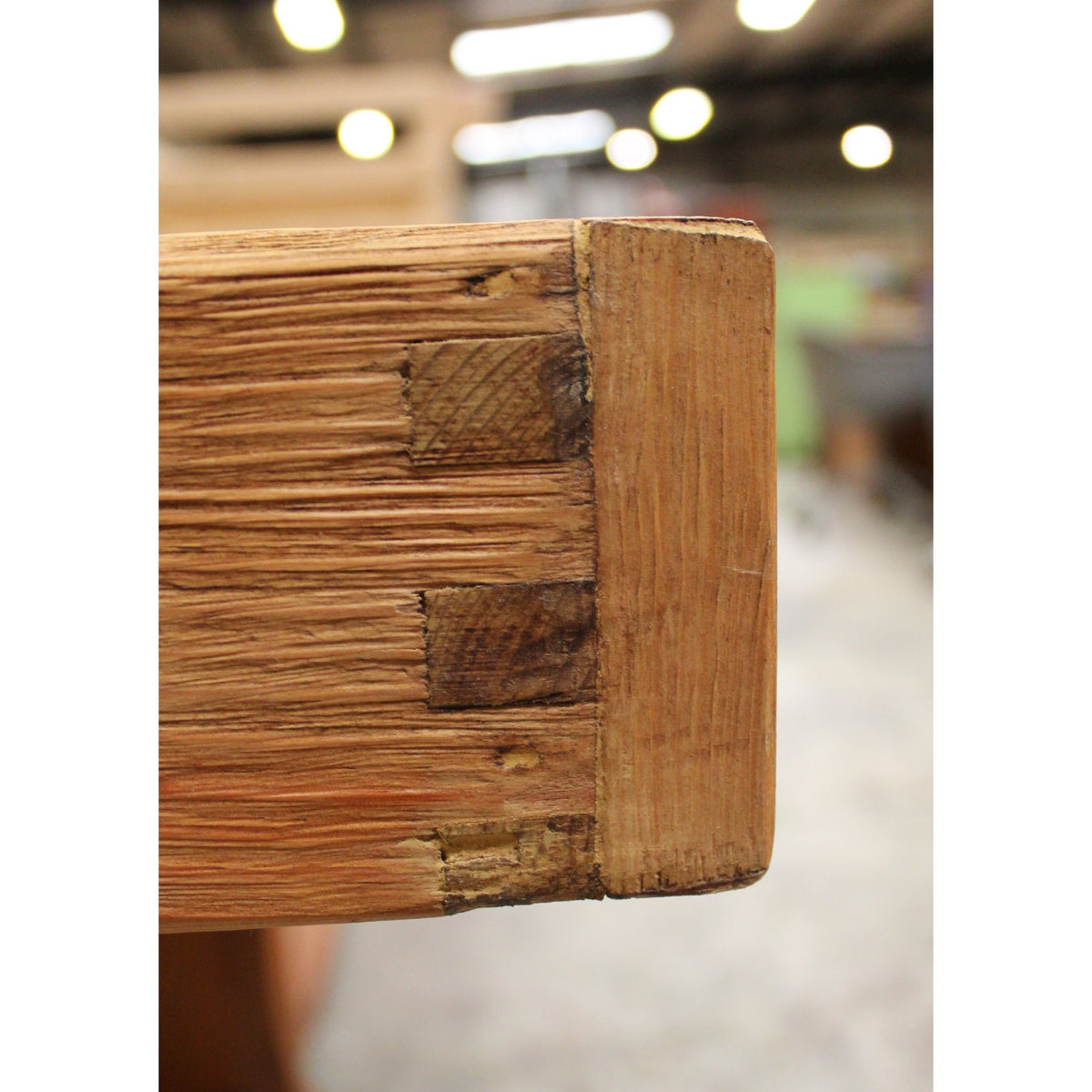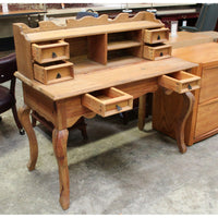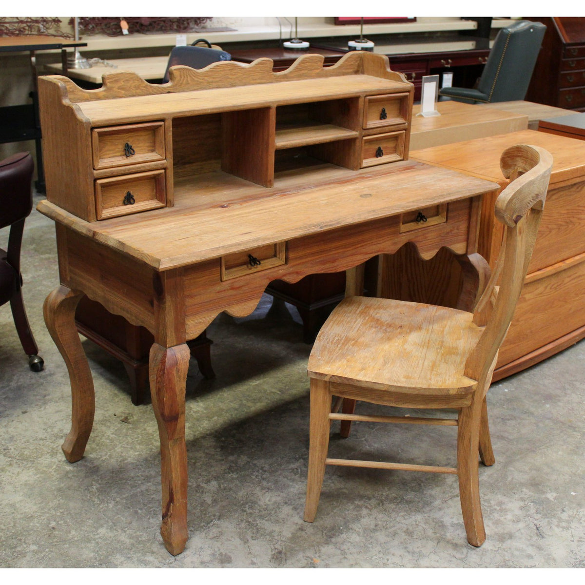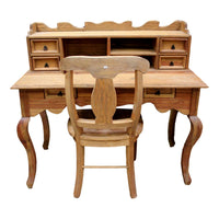 Features rustic styling, solid wood construction with a factory rustic natural finish, 6 drawers with dovetail construction, scalloped trim, and includes a matching chair.